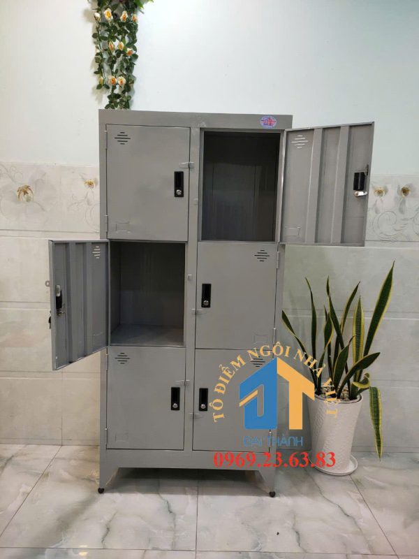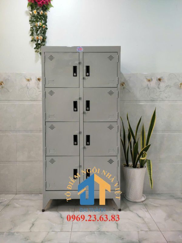 Cấu tạo: 8 cửa + Tủ được làm từ chất liệu sắt sơn chống gỉ sét + Tủ có màu chính là màu xám ghi